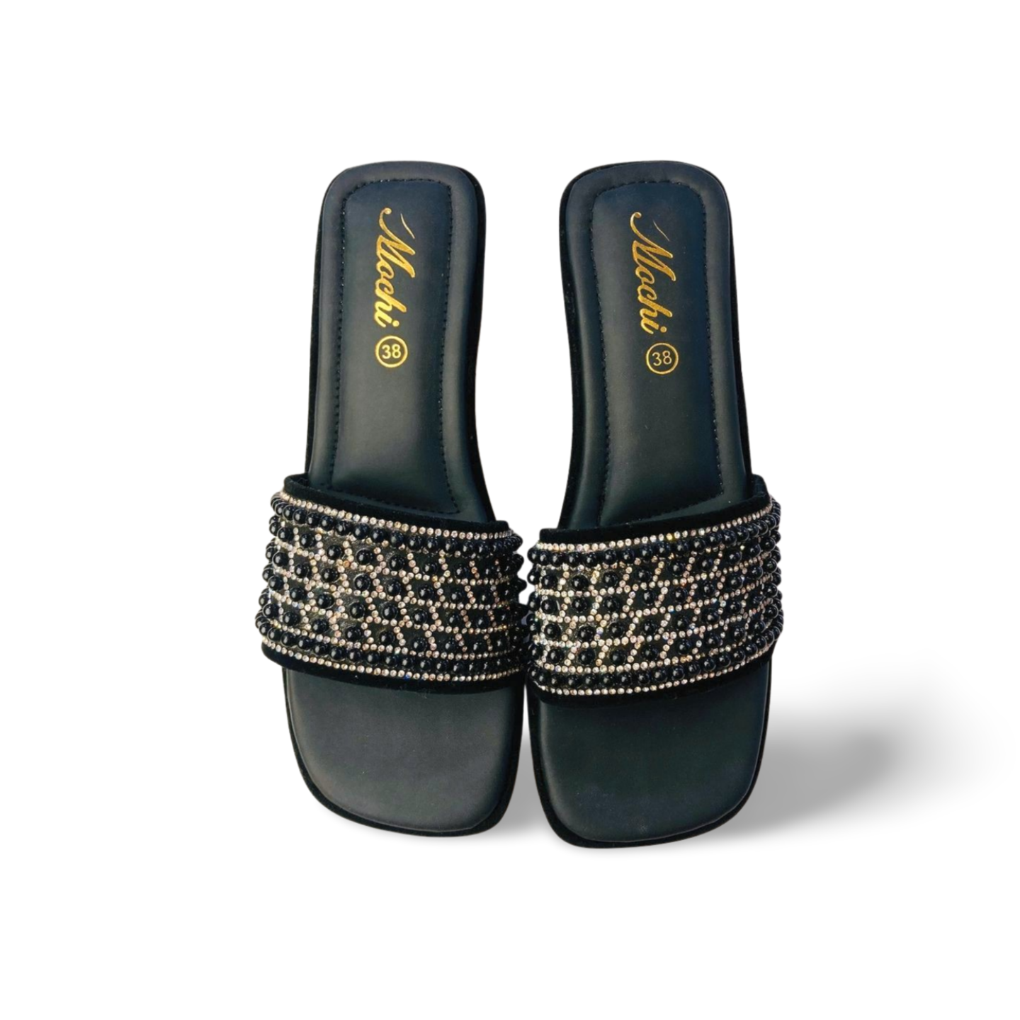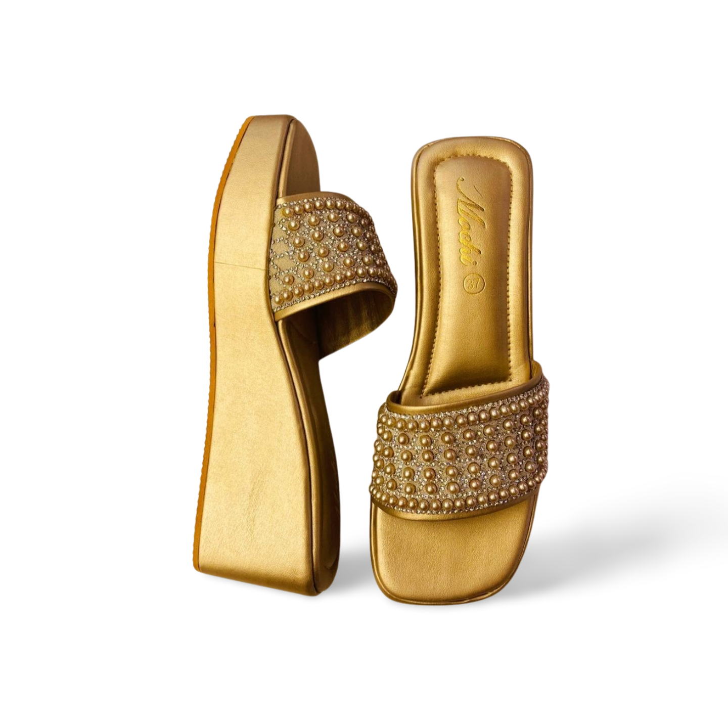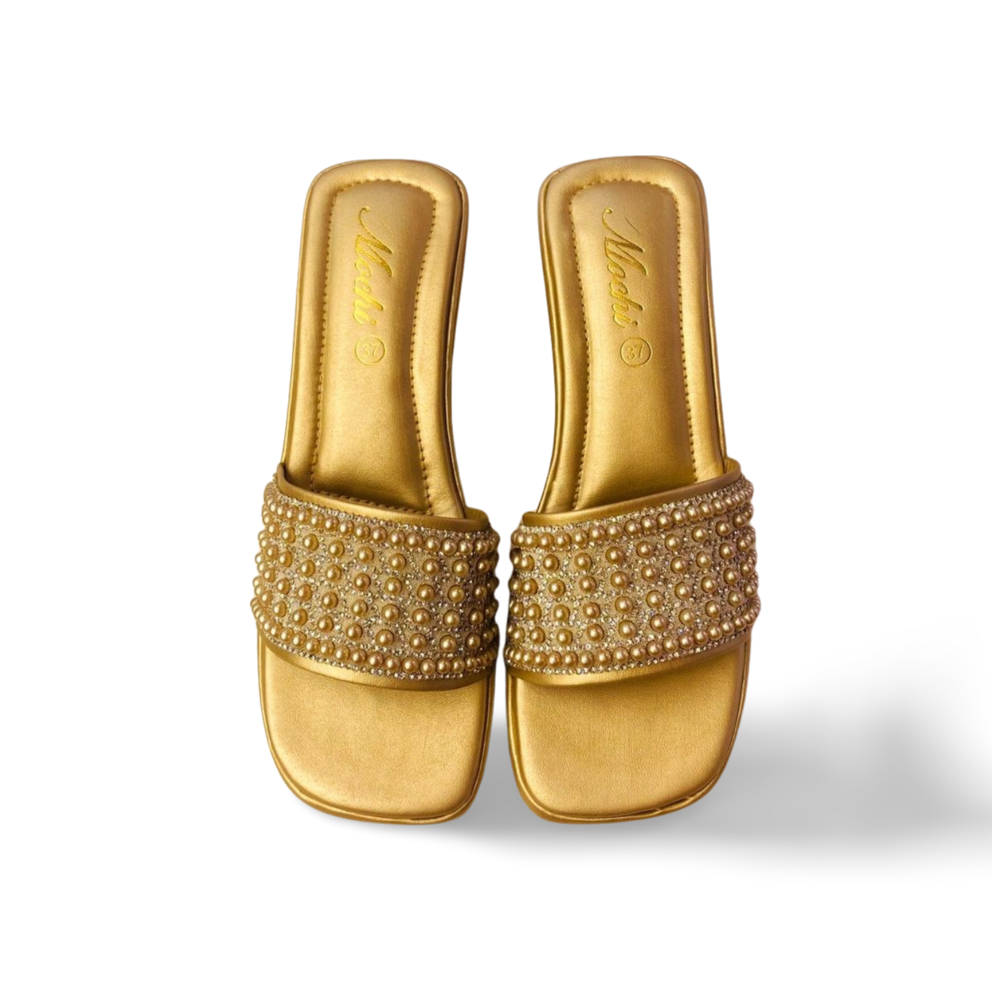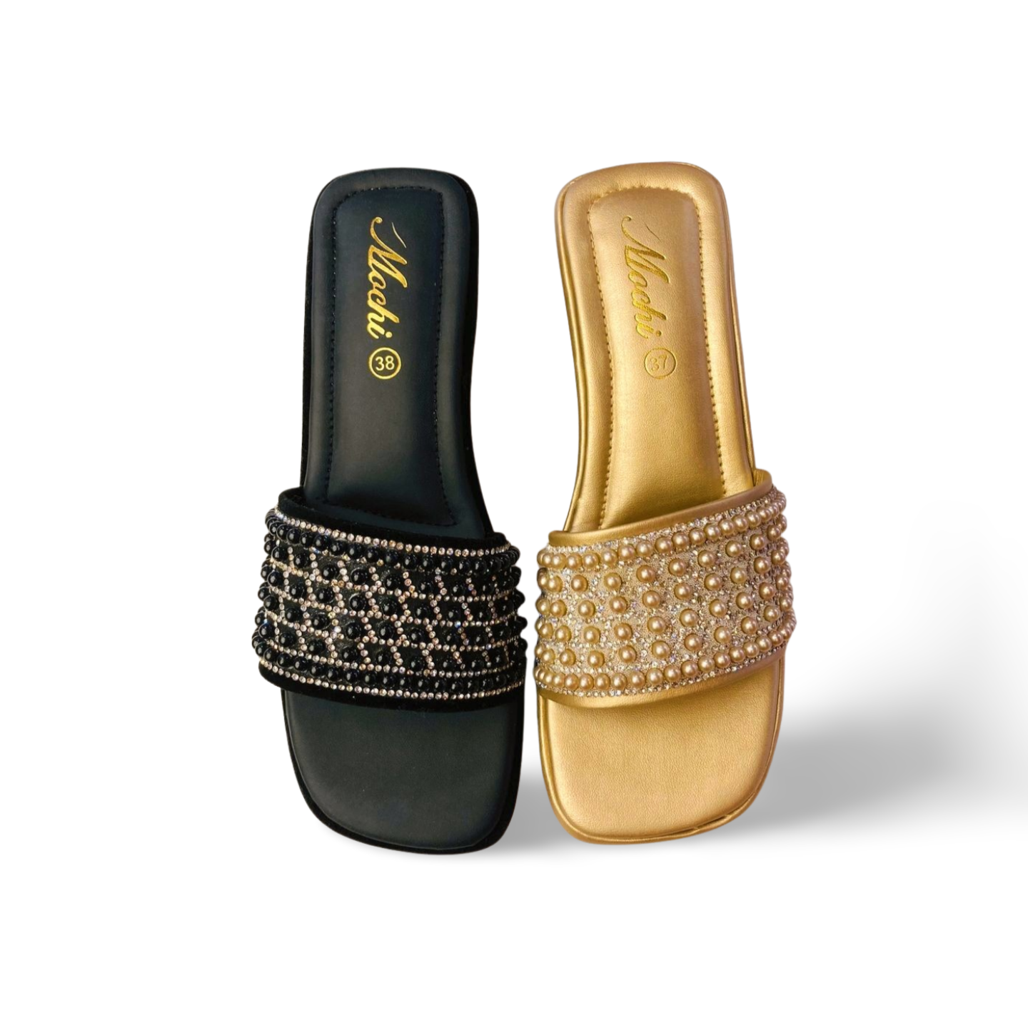 ✔️ Hand-Embellished Straps: Pearls & crystals for dazzling glam